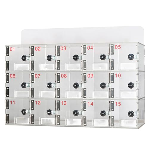 ExoticaBlend Boîte de Verrouillage de Téléphone Portable, Casier de Téléphone Portable en Acrylique, Armoire de Rangement Murale pour Téléphone Portable pour Salle de Classe,15Slots