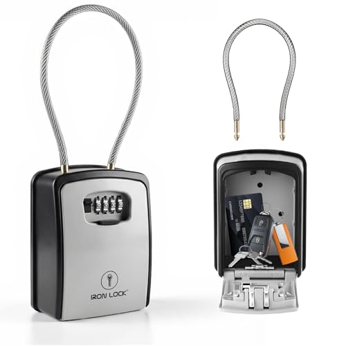 Puroma Boîte à serrure, boîte de verrouillage à clé murale et boîte à combinaison portable avec code réinitialisable, boîte de sécurité pour clés de maison extérieure, rangement des clés de rechange