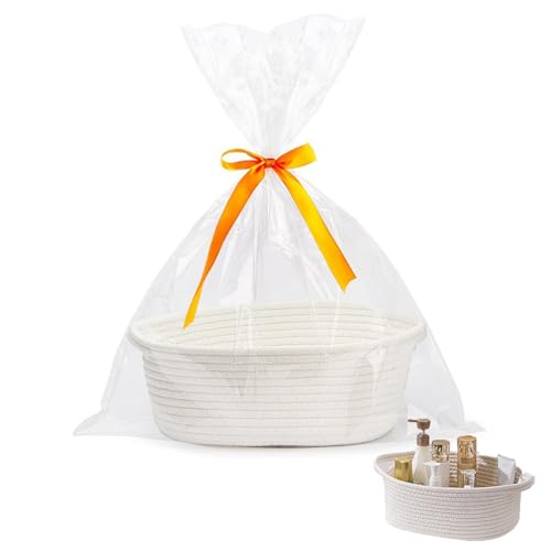 Panier Cadeau Vide,Panier Tissé en Corde Coton Sac Rangement Salle de Bain Corbeille Boite Décoration Organisateur pour Salon Chambre à Coucher Anniversaires et Rangement