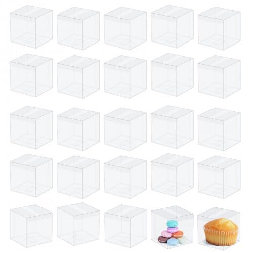 Ehuihuan 25 Boîtes à Gâteau en Carton Transparent, 5x5x5 cm, Boîte Cadeau Vide, Emballage Cadeau, Faltbare, Pour Bonbons, Chocolats, Mariages, Anniversaires