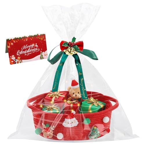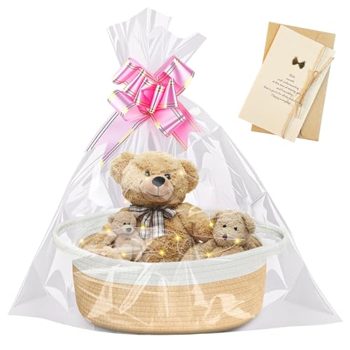 Panier Cadeau Vide, Boite Cadeau Vide Avec Sacs Cadeaux Et Rubans Et Carte d'invitation, LED Panier de Rangement Tressé pour Noël, Thanksgiving, Anniversaire, Mariage, Fête prénatale