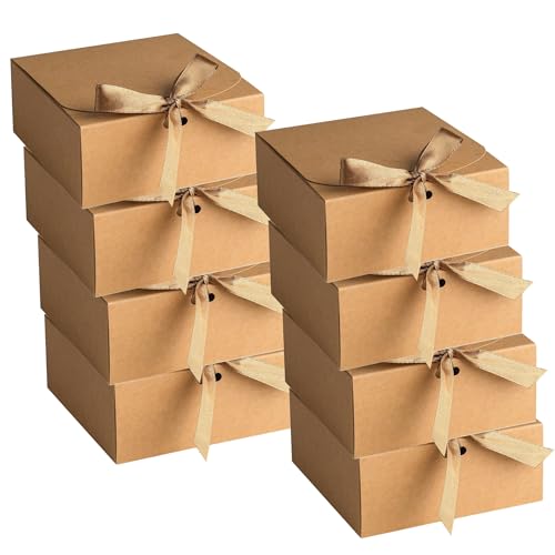 GXFCING Boîte Cadeau Marron avec Couvercle, 20x20x10cm Grande Boîte Cadeau Vide, 10PCS Boîte D'emballage Cadeau pour Mariage, Anniversaire, Noël, Pâques, Cadeau de Fête