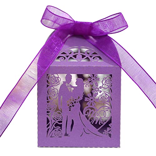 URFEDA 50pcs Boîtes de Faveur de Mariag Boîtes Cadeau,Boîte Baptême Dragée, Boîtes Cadeau Vide avec Rubans, Fleur Amour Boîtes Cadeaux en Papier, Coffret Cadeau pour Anniversaire, Mariage, Fête