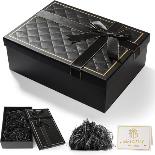 Extra Large Boîte Cadeaux Noir, 43 x 25,5 x 10cm, Magnétique Boîte-Cadeau Grande Vide Décorative Boîte de Présent pour Anniversaire, Noël