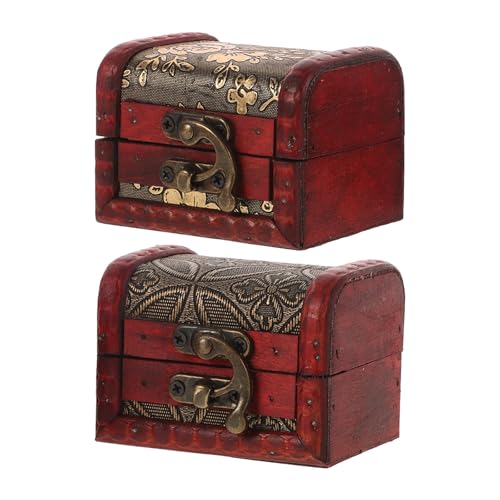 PATKAW Lot de 2 Mini Boîtes à Bijoux en Bois Design Vintage Chinois, Boîte à Trésors Décorative Rangement de Bijoux et Objets Précieux la Maison