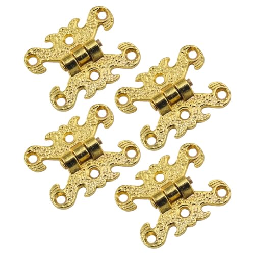 EaseSunny Lot de 4 charnières de placard vintage en alliage de zinc gravées avec vis pour boîtes à bijoux en bois, tiroirs, meubles, doré, 39 x 30 mm