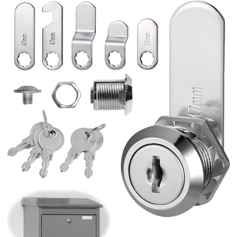 Serrure de boîte aux lettres 16 mm avec 4 clés - Livrée avec 5 plaques de verrouillage différentes, serrure à levier pour boîtes aux lettres et