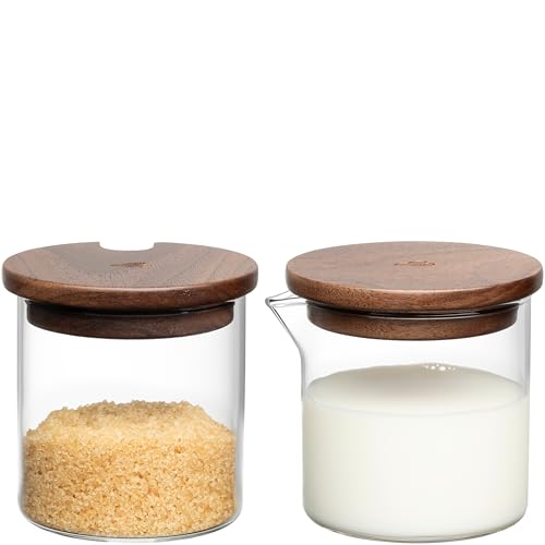 LEONARDO HOME NOVO LEGNO 055200 Lot de 2 boîtes de conservation pour lait et sucre pour lait à café avec couvercle Accessoires de table modernes Design élégant Hauteur 7,5 cm Transparent
