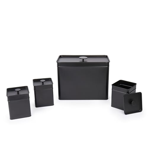 Salter BW12614EU7 Kuro ensemble de rangement de cuisine 4 pièces - Grand bac à pain avec couvercle, ensemble de 3 boîtes, thé, café, panier à sucre, nettoyage facile