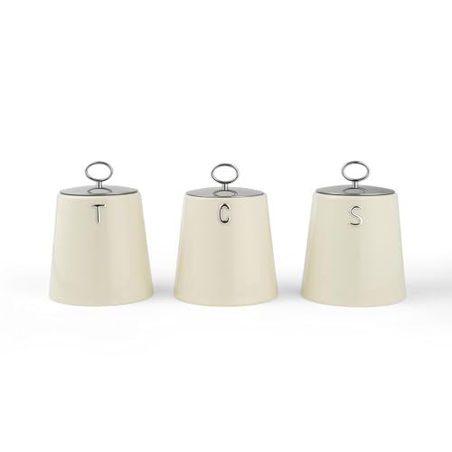 Salter Retro Crème Lot de 3 Bocaux – Boîtes à Thé, Café et Sucre, Contenants de Rangement pour Aliments Secs, Acier Résistant, Lettrage Embossé Élégant