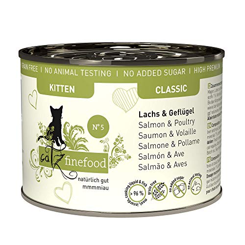catz finefood Kitten N 5 Lot de 6 boîtes de 200 g de Nourriture Humide pour Chats au Saumon et à la volaille - Nourriture Fine pour Jeunes Chats - sans céréales ni Sucre à Haute teneur en Viande