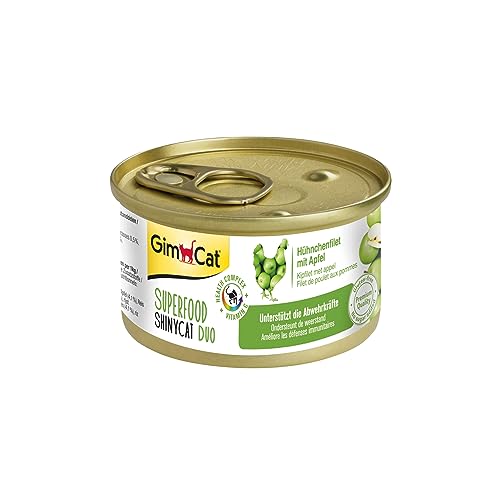 GimCat ShinyCat Duo Poulet aux pommes - Aliment pour chats à base de filet juteux sans sucre ajouté pour chats adultes - 24 boîtes (24 à 70 g)