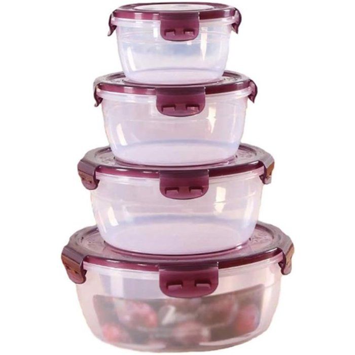 Grizzly Boites Alimentaires avec Couvercles Hermétiques à Clips - Forme ronde - Lot de 4 - Conservation des Aliments - Étanche et antifuite - sans BPA