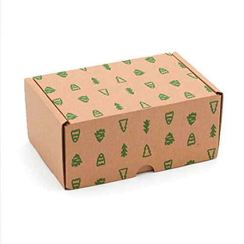 ONLY BOXES Lot de 4 cartons expéditions postales, boîtes auto-montables emballage de Noël, dimensions boîte cadeau, 15 x 10 x 7 cm (L x l x H) carton écologique 100% recyclé (AMA519)