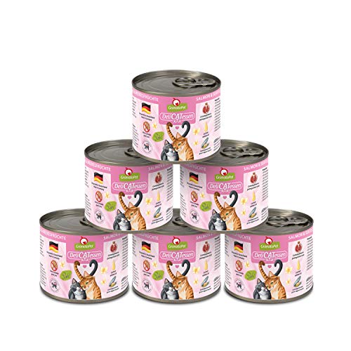 GranataPet Delicatessen Lot de 6 boîtes de 85 g de Nourriture Humide au Saumon et Fruits de mer pour Chats gourmets sans céréales et sans sucres ajoutés