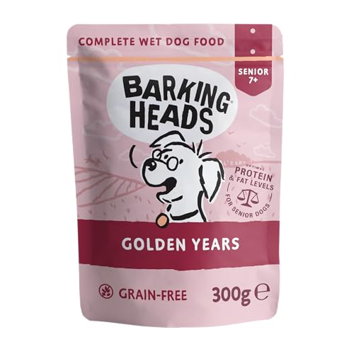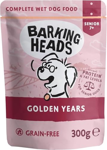 Barking Heads Golden Years Lot de 10 boîtes de 300 g de Nourriture Humide pour Chiens âgés – Poulet et Saumon en liberté – sans arômes artificiels – Recette sans céréales avec des Niveaux optimaux de