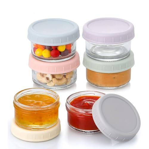 MCHERRY Lot de 6 récipients à vinaigrette à emporter, 76,5 g en verre avec couvercles, étanches, réutilisables pour boîtes à déjeuner, pique-niques et voyages