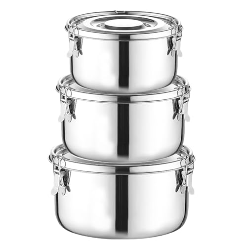 Lot de 3 Boîtes a Déjeuner en Acier Inoxydable, Boîte alimentaire en acier inoxydable Avec Couvercle Ronde Lunch Box En Acier Inoxydable Gamelle Metal Camping pour Les Collations Les Repas Principaux