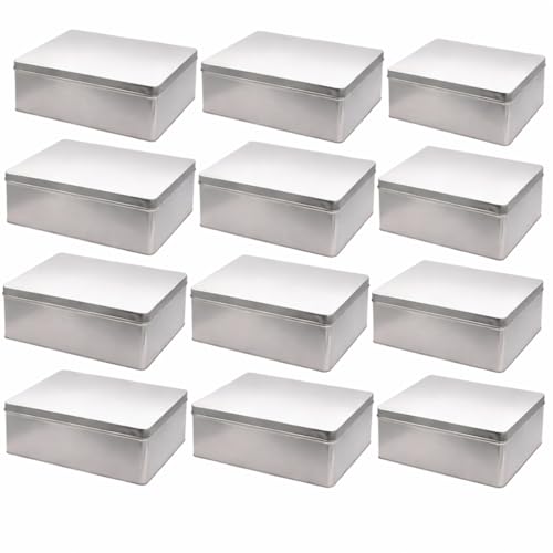 Aucomptoirdesboites Lot de12 boîtes rectangulaire en fer-blanc vernis alimentaire XL 27 x 20 cm Boîte métal cuisine et rangement alimentaire - couvercle hermetique - stockage sec ou alimentaire (12)