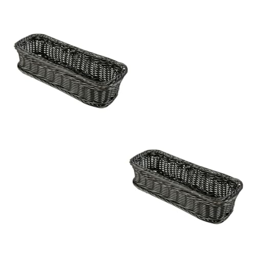 GRANNY SAYS Panier Rangement Osier en Plastique, Lot de 2 Paniers et Boîtes de Rangement avec Poignées, Paniers de Décoration, Panier Osier Rectangulaire, Petits Panier Rangement Salle de Bain, Gris