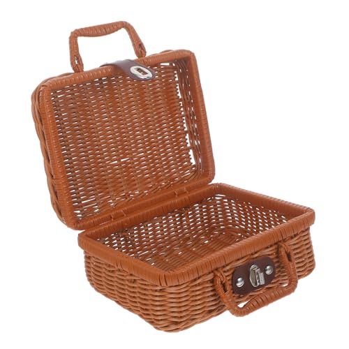 JOINPAYA Imitation Boîte De Rangement En Rotin Valise En Rotin Étui De Rangement Rétro Cas Tissé Rangement En Osier Avec Couvercle Boîtes En Rotin Avec Couvercles Brun Cuir Artificiel