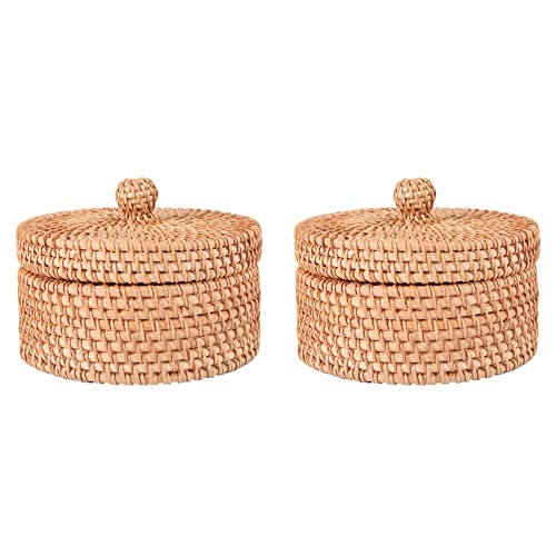 Lot de 2 boîtes de rangement en rotin tissé à la main avec couvercle en osier pour thé, nourriture, pique-nique, pain, fruits, gâteaux, panier de cuisine B