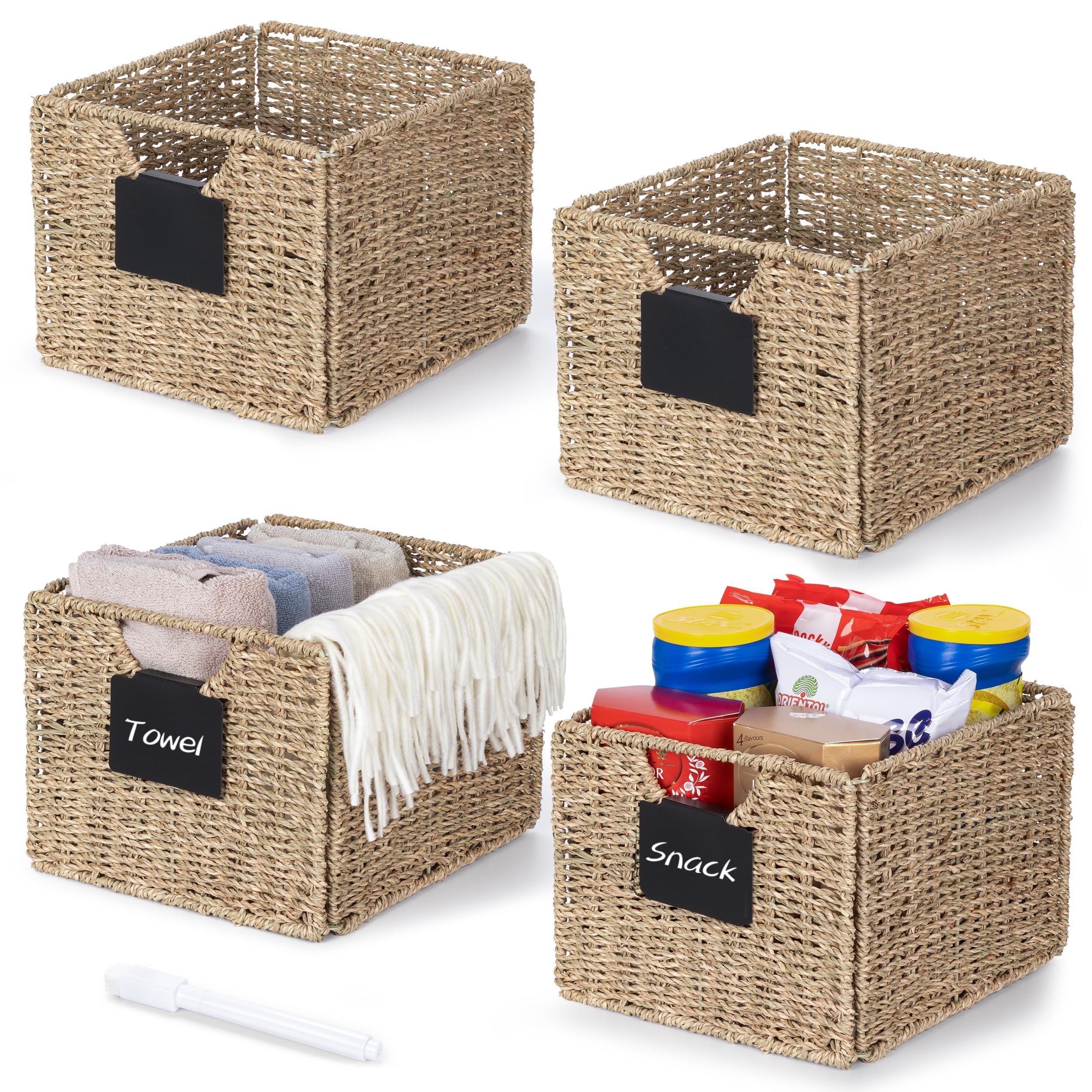 Paniers de rangement en osier tissé à la main – Casier de rangement polyvalent ouvert sur le devant | Paniers gigognes | Boîtes de rangement en jonc de mer tissé à la main | Panier de présentation