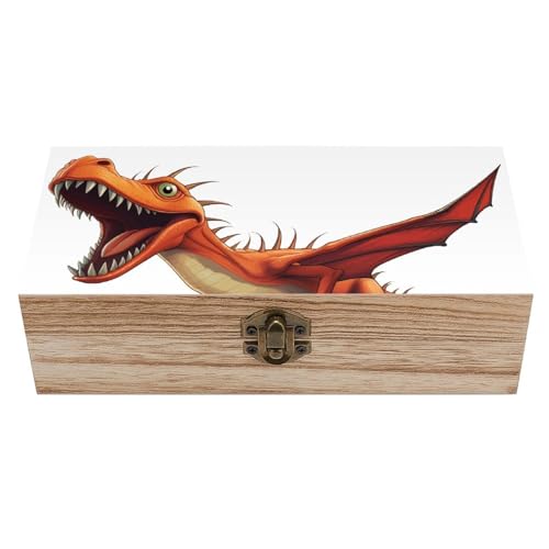 Boîte de rangement dinosaure ptérodactyle Amalism, bacs de rangement vintage en bois durable, boîtes de rangement décoratives pour bijoux et photos, boîte commémorative pour hommes et femmes