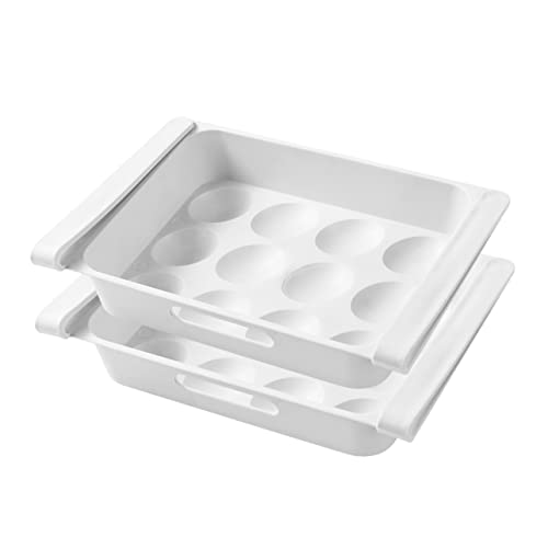 Gatuida Lot de 2 Boîtes de Rangement à Tiroir en Plastique Blanc pour Réfrigérateur, Conservation des Œufs et Fruits, Multifonctionnel, Anti-humidité, Gain de Place Cuisine Familiale