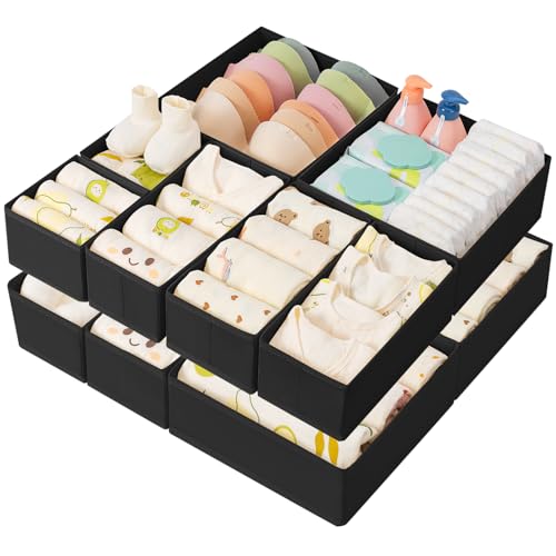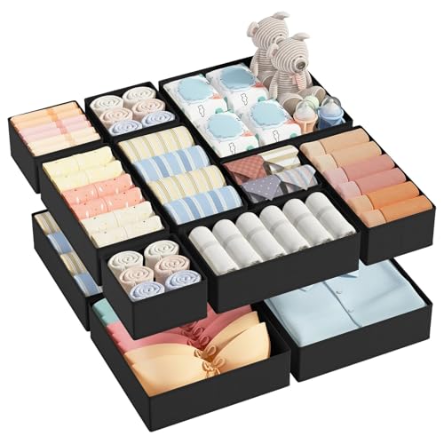 DIMJ Lot de 12 Boites de Rangement de Non-tissé, Organiseurs de tiroir Pliable et Respirant, Rangement Tiroir Ideal pour Soutiens-Gorge, Sous-Vêtements, Noir