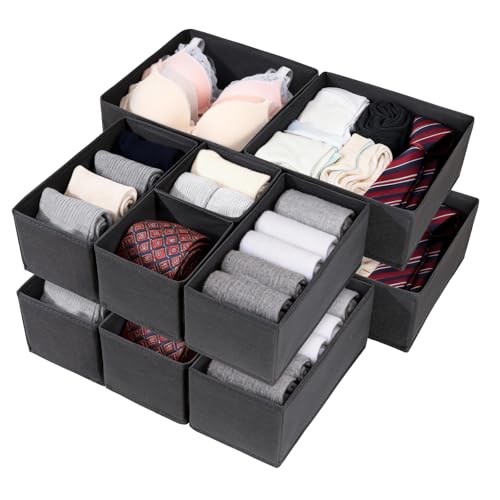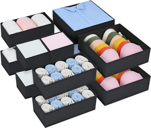 DIMJ Lot de 10 Boites de Rangement de Non-tissé, Organiseurs de tiroir Pliable et Respirant, Rangement Tiroir Ideal pour Soutiens-Gorge, Sous-Vêtements, Noir