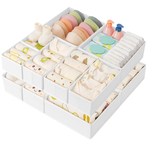 DIMJ Boites de Rangement de Non-tissé, Organiseurs de tiroir Pliable et Respirant, Rangement Tiroir Ideal pour Sous-Vêtements, Blanc, Lot de 12