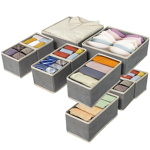 Yidaxing Boites de Rangement, Lot de 10 Organisateur de Tiroir Pliable, Panier de Rangement Vêtement en Non-tissé Organisateur Placard Ouvert pour Sous-Vêtements Cravates Chaussettes(Gris Clair)