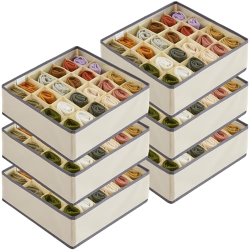 Lifewit Lot de 6 Organisateurs Tiroirs, Boites Rangement Pliables en Tissu pour Armoire, Séparateur Tiroir, 24 Compartiments pour Rangement des Chaussettes, des Culottes, des Cravates, Gris