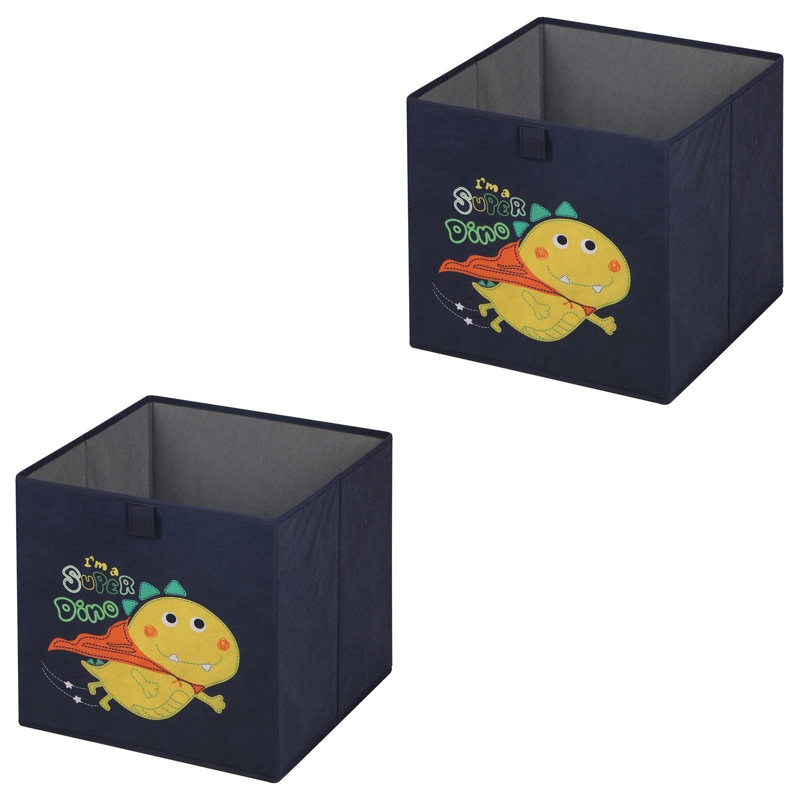 Lot de 2 boites de rangement en tissu DINO tiroir en tissu bleu pour enfant