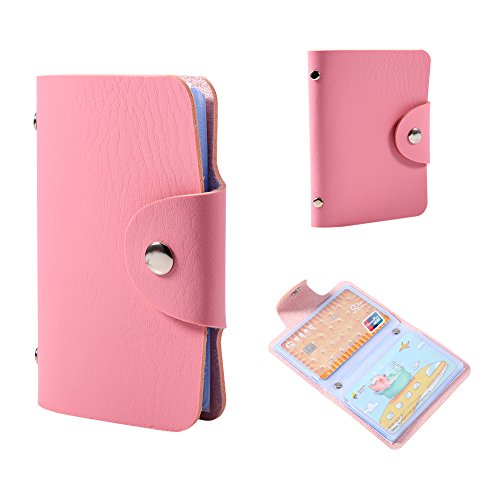 RIZGHWOY 1 Carte PC de Cartes de Boîtier PU avec Sacs en Cuir pour 24, Belle Couleur Lumineuse, Emplacement en Plastique Souple, adapté aux Hommes et aux Femmes, Bleu (Pink)