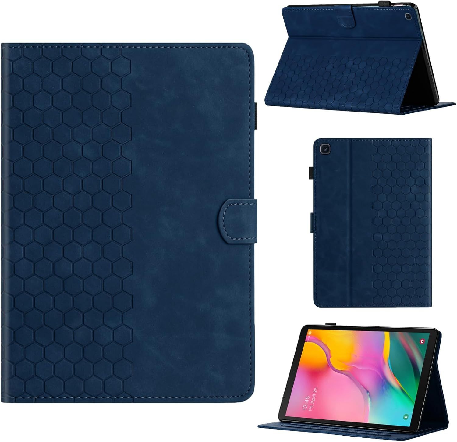 Coque Pour Samsung Galaxy Tab A 10.1 Pouces 2019 Sm-T515/T510 Boîtier Avec Support Avec Fente Pour Carte, Motif Hexagonal Structuré Housse En Similicuir Pour Galaxy Tab A 10.1"" 2019, Bleu