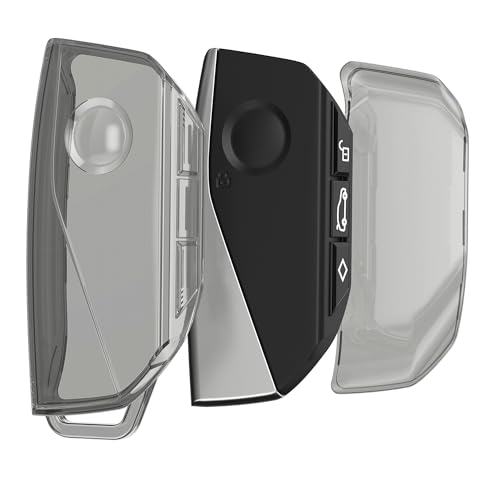kwmobile Boitier Clé de Voiture Compatible avec Audi A6 A7 A8 Q7 Q8 Keyless 3-Bouton Coque - Coque de Protection en TPU Souple pour Cle de Voiture - Noir-Transparent