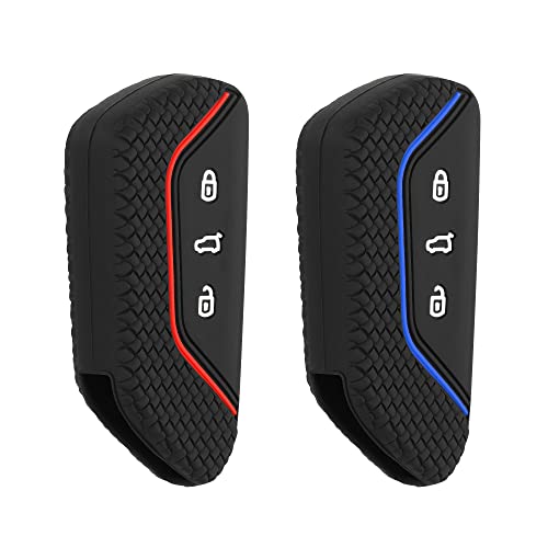 kwmobile 2X Boitier clé de Voiture Compatible avec VW Golf 8 3-Bouton - 2X Coque de Protection Souple en Silicone - Noir-Rouge-Noir-Bleu