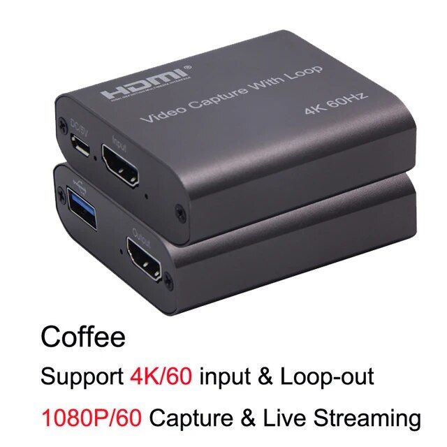 Boîtier d'enregistrement vidéo statique pour jeu PC,streaming en direct,carte de capture en boucle,micro intégré,sortie audio,4K,HDMI vers USB 2.0,3.0 - Type USB 3.0 Loop Coffee
