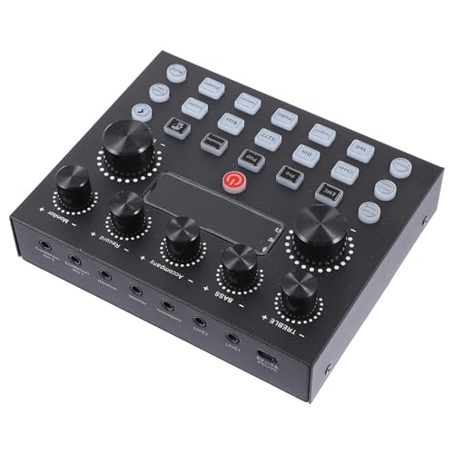 BESPORTBLE Carte Son Externe Éclairage Coloré, Modificateur de Voix et Mixeur Audio pour Live Streaming et Podcast, Équipement DJ Polyvalent Adapté aux Adultes, Boîtier Métallique Robuste,