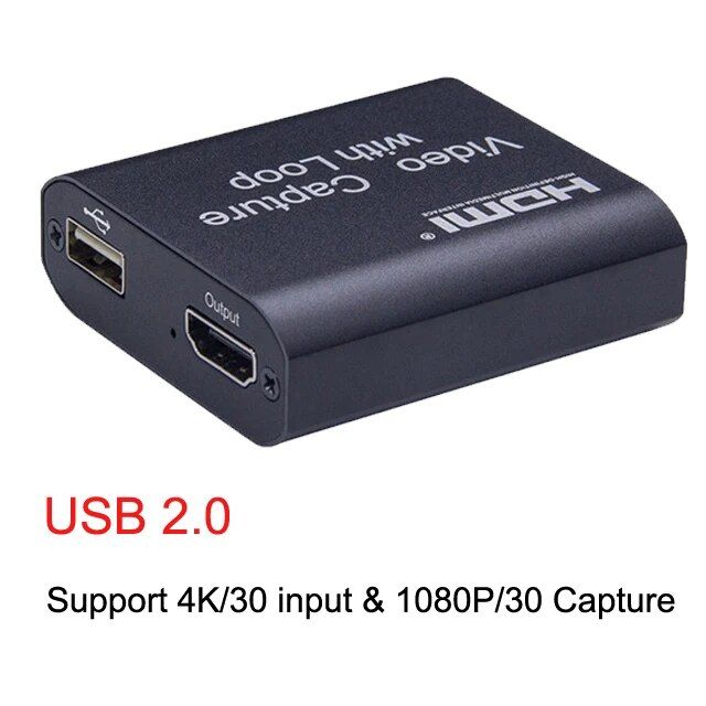 Boîtier d'enregistrement vidéo statique pour jeu PC,streaming en direct,carte de capture en boucle,micro intégré,sortie audio,4K,HDMI vers USB 2.0,3.0 - Type 4K with Loop