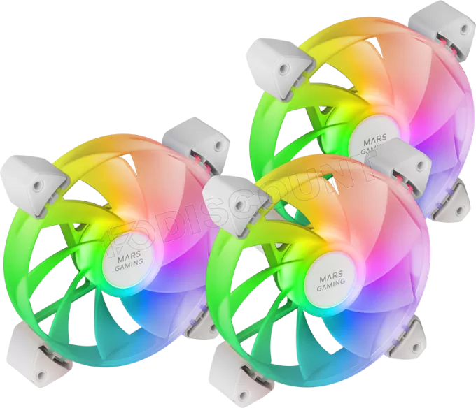 Lot de 3 Ventilateurs boitier Mars Gaming MF-3AR RGB - 12cm (Blanc)