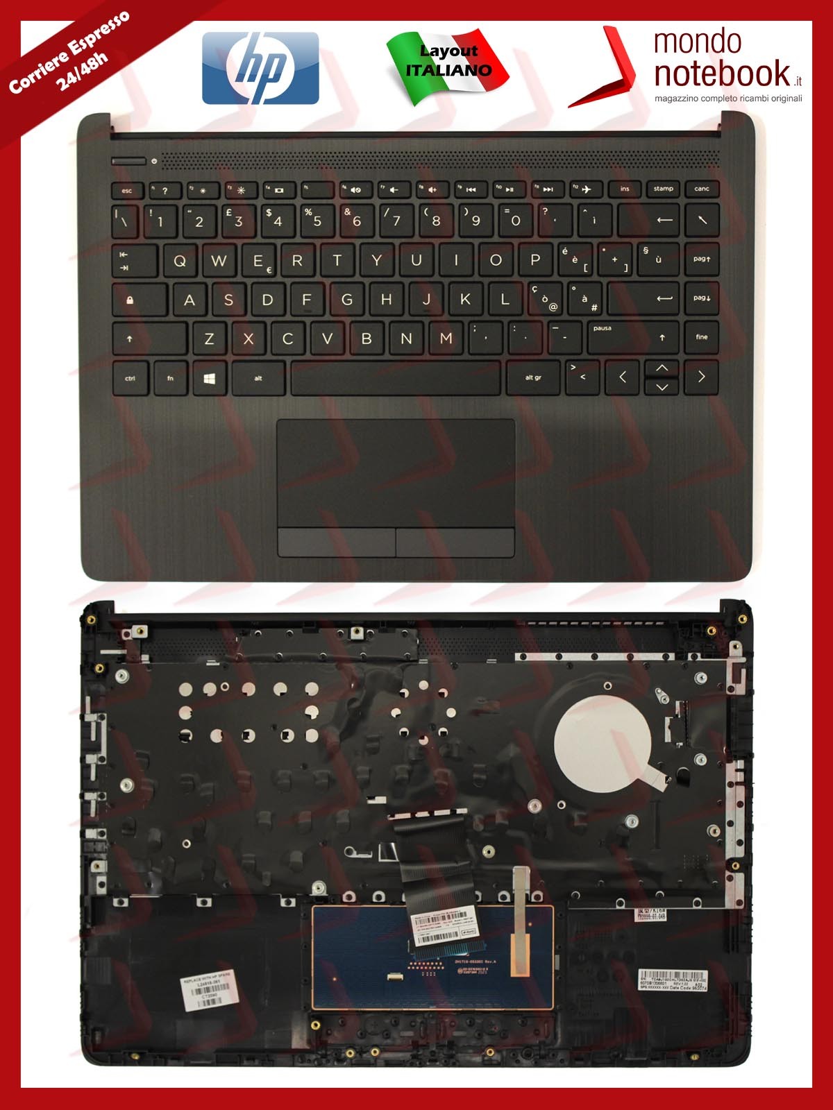 Clavier Avec Top Boîtier HP 15-bs (Nera) Layout Italiano