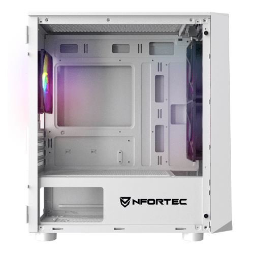 Boitier PC Nfortec Dys NF-CS-DYS-W Montage Arrière USB Micro ATX Verre Trempé Blanc
