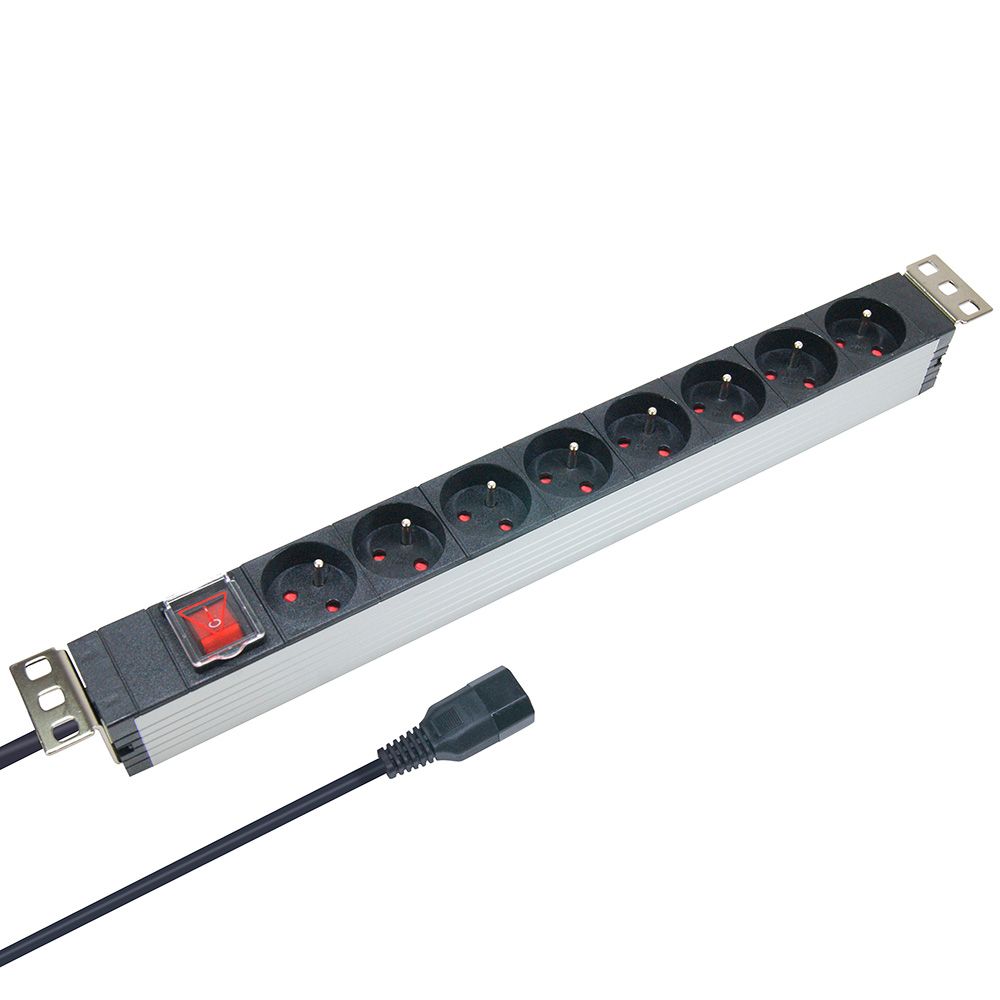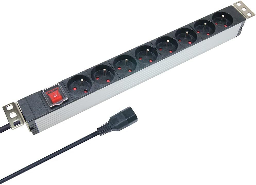37321 Multiprises Rackable 19 Pouces Fiche C14 - Bandeau Électrique 8 Prises Avec Interrupteur Boitier Alu - Câble 1,80M[DYB980273]