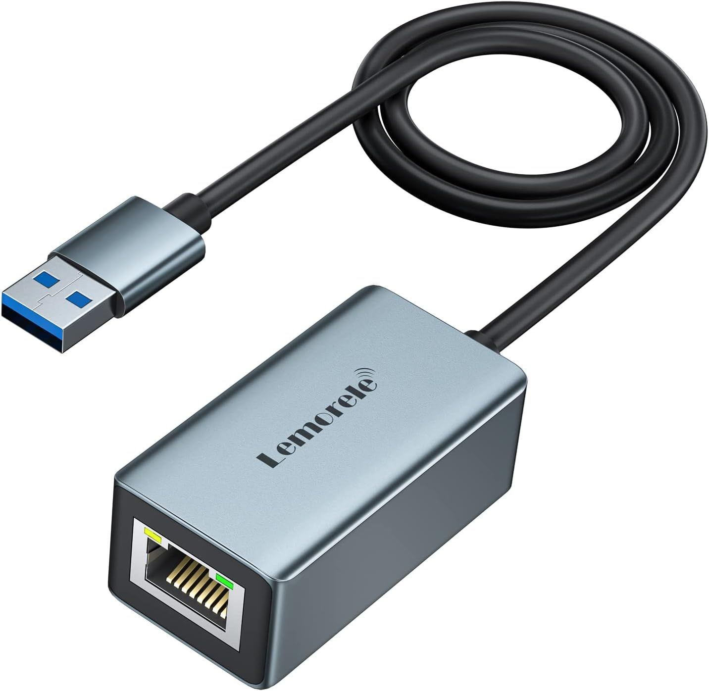 Lemorele Adaptateur USB vers Ethernet Gigabit 1000Mbps, Boîtier en Aluminium USB 3.0 vers RJ45 Réseau Compatible MacBook, Switch Mi Box S 4 3, Windows, Linux, Android