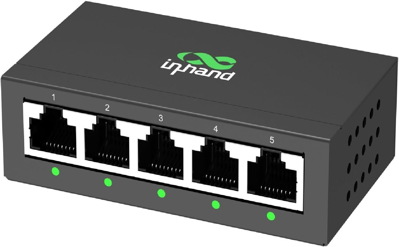 InHand Networks Commutateur réseau Gigabit, Switch Ethernet Gigabits, Plug & Play,Boîtier métallique à Haute Dissipation Thermique avec Prise d’Alimentation EU. (5 Ports)