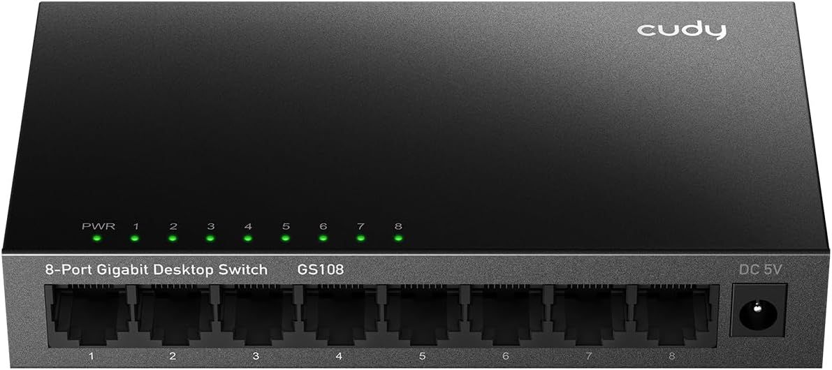 Binardat 8 Port Gigabit Ethernet Switch, 8 Ports 100/1000Mbps, Mini Taille Boîtier métallique Bureau Non géré | Montage Mural Plug and Play