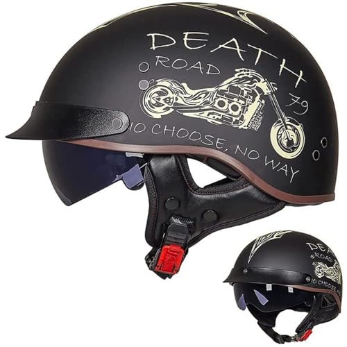Casque Bol Vintage Jet pour Moto et Scooter Homme, ECE Homologué, Pilote Personnalité, J-L=(59~60cm)
